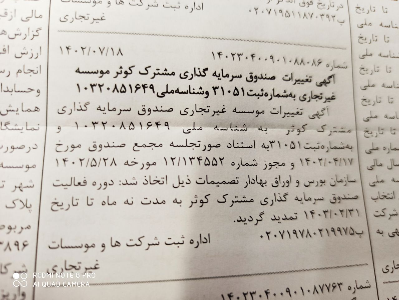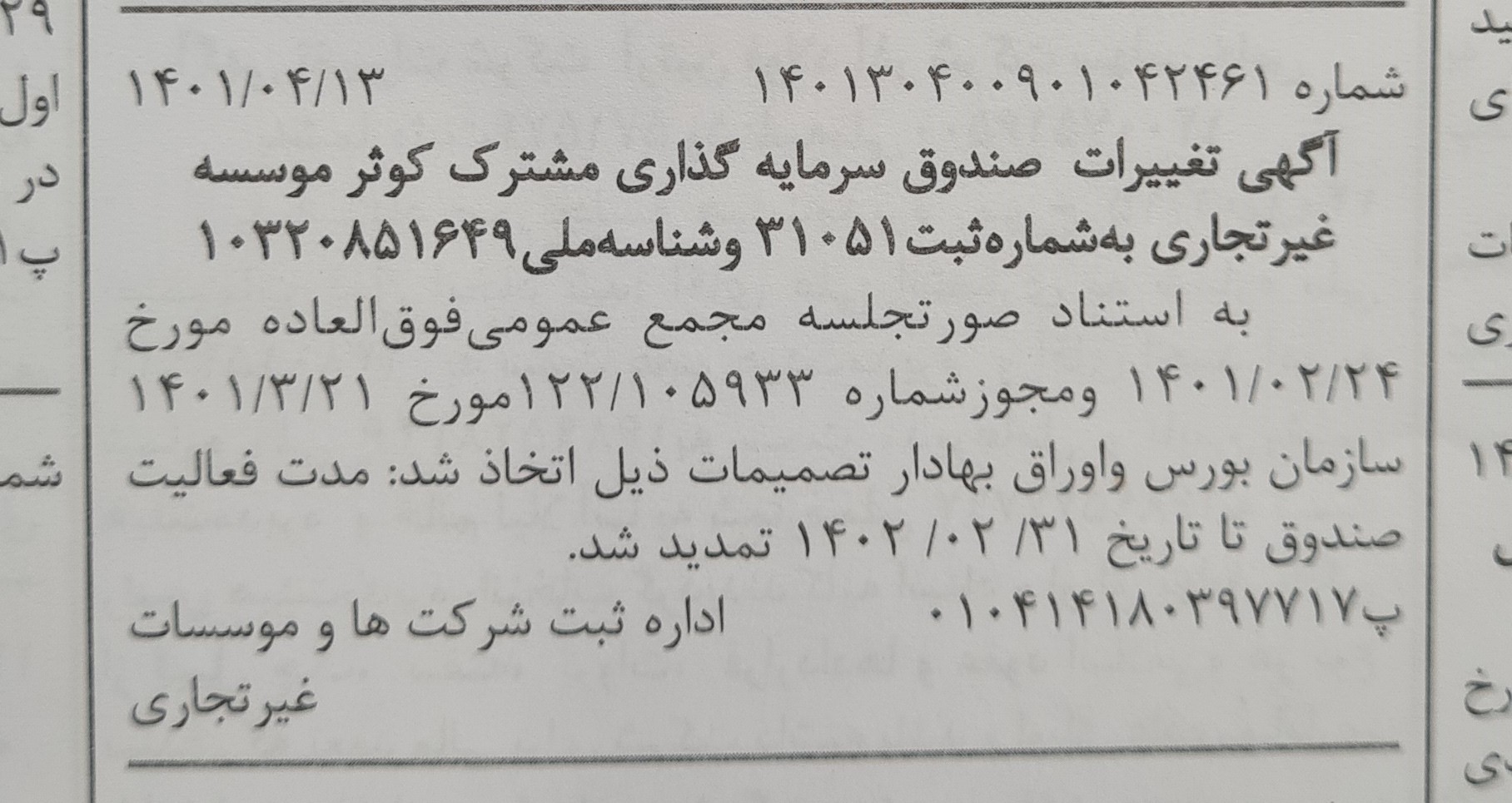 روزنامه رسمی تمدید فعالیت صندوق